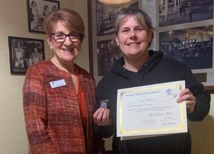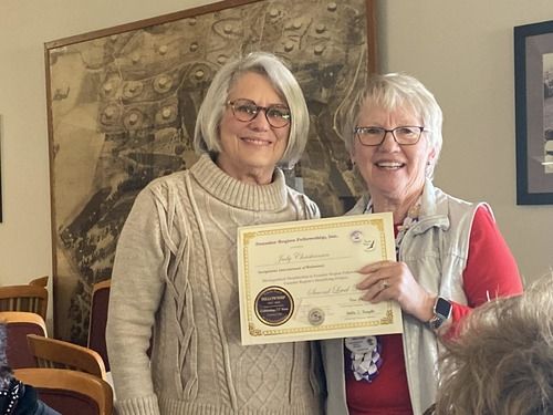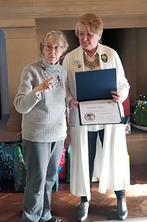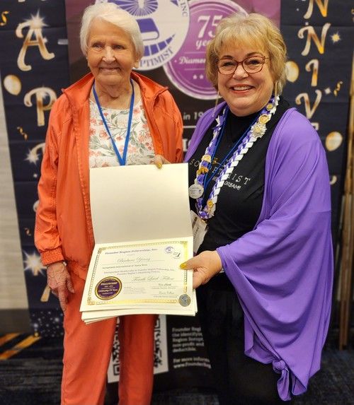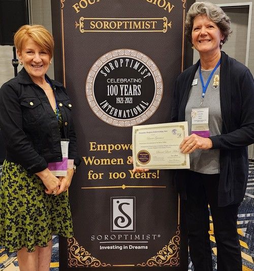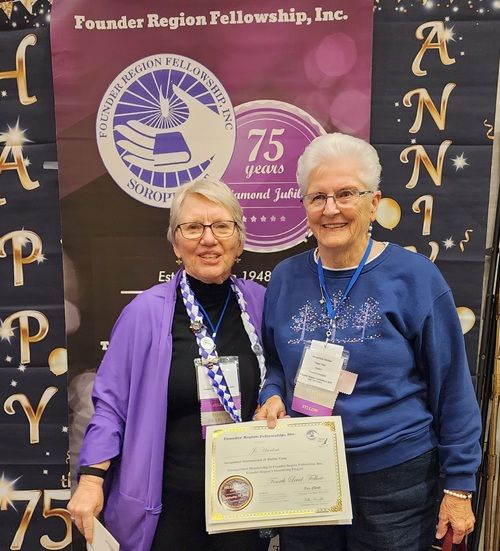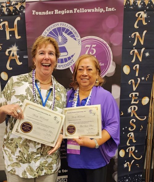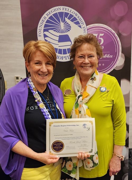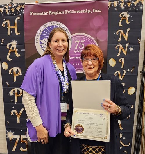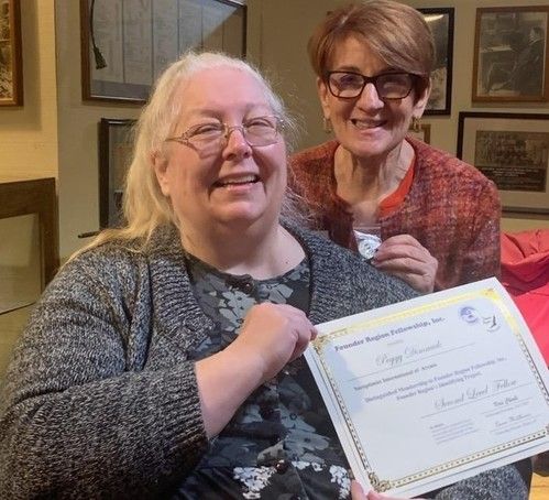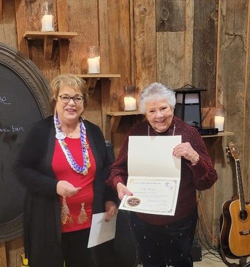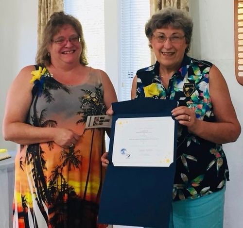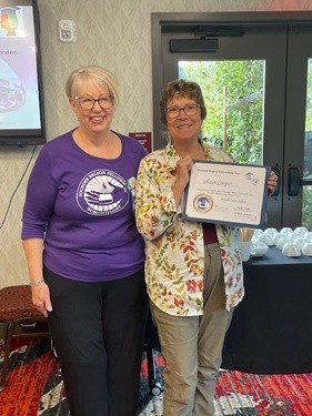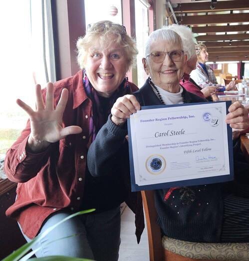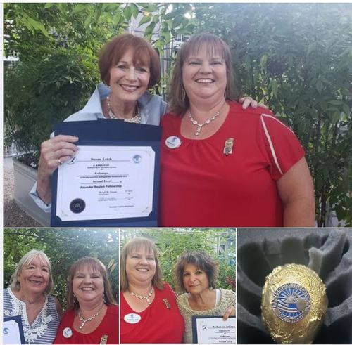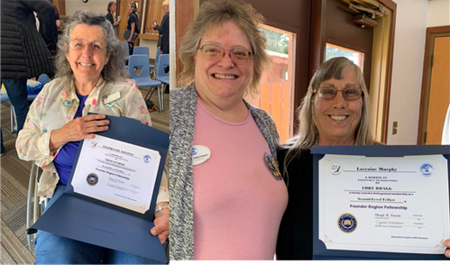 Carol Steele earns her 5th level Fellow at District Meeting, right after getting to 4th level at Conference! Given by D4 Director Tess who is amazed at Carol's great luck!
