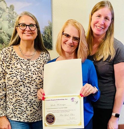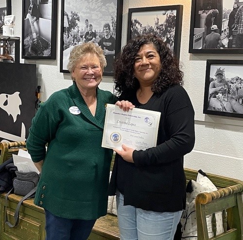 Christina Lopez earns her 1st level Fellow, given by proud Fellowship President Vicki.